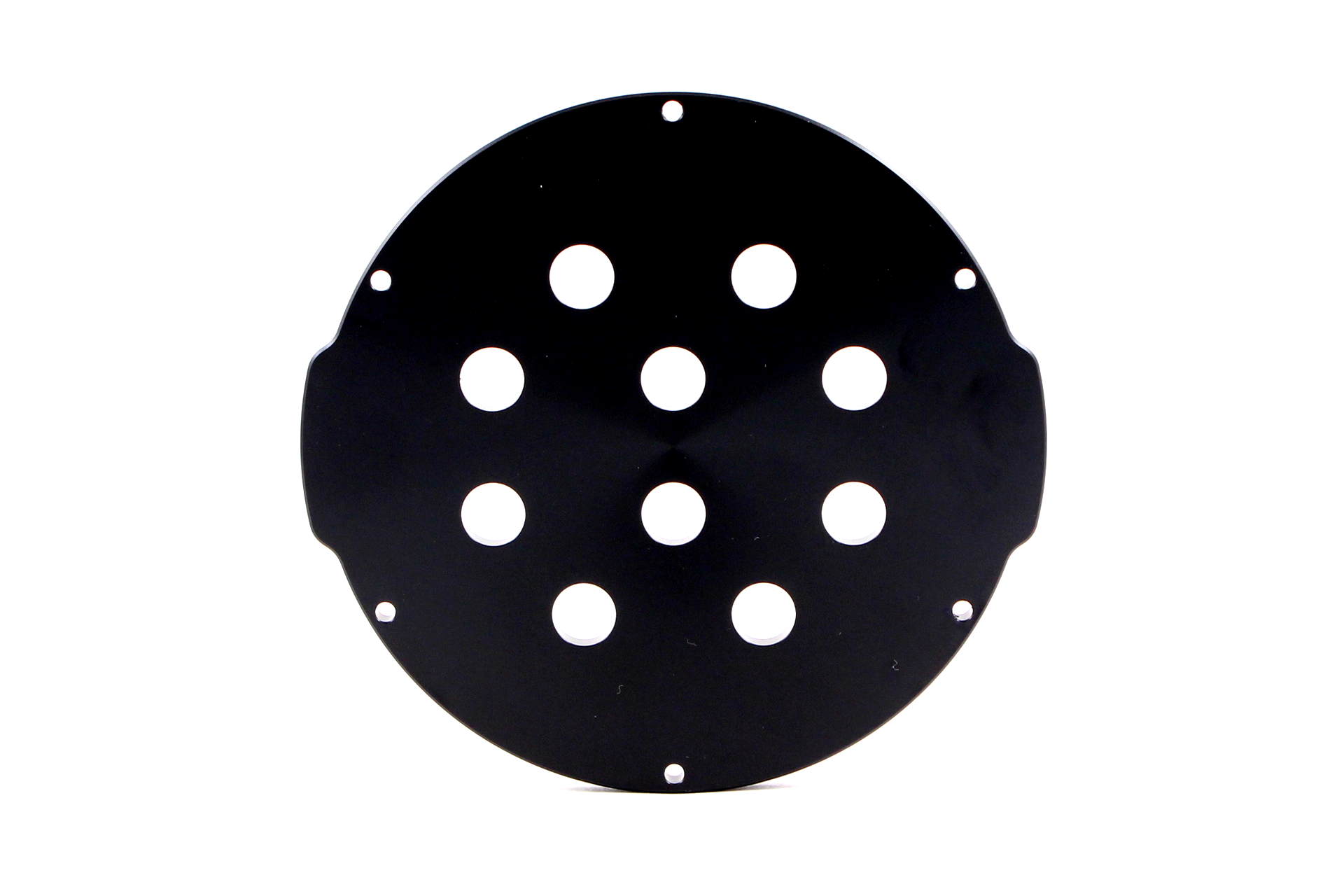 This aluminum end cap with 10 x 10mm holes is for use with Watertight Enclosure for ROV/AUV (4″ Series). We designed these end caps to have a greater depth rating than the clear acrylic end caps.