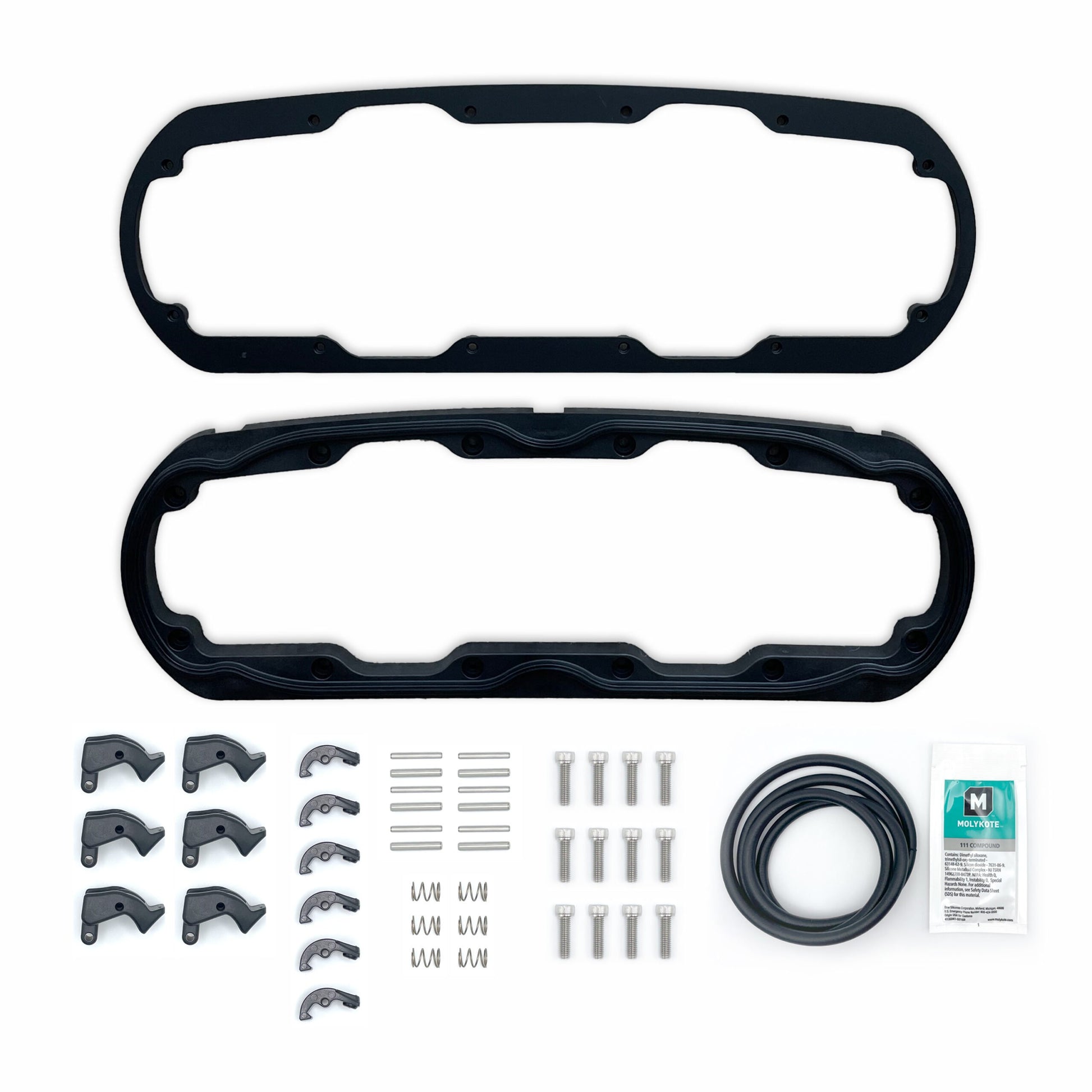 The BlueBoat Hatch Base and Latches are one of the parts of the boat that took the longest to develop. The Hatch Base uses a foam O-ring to seal to the hull and is held in place with the included backing plate and hardware. It's symmetric and identical on the port and starboard sides of the boat, so you'll need two of these for a pair of hulls.