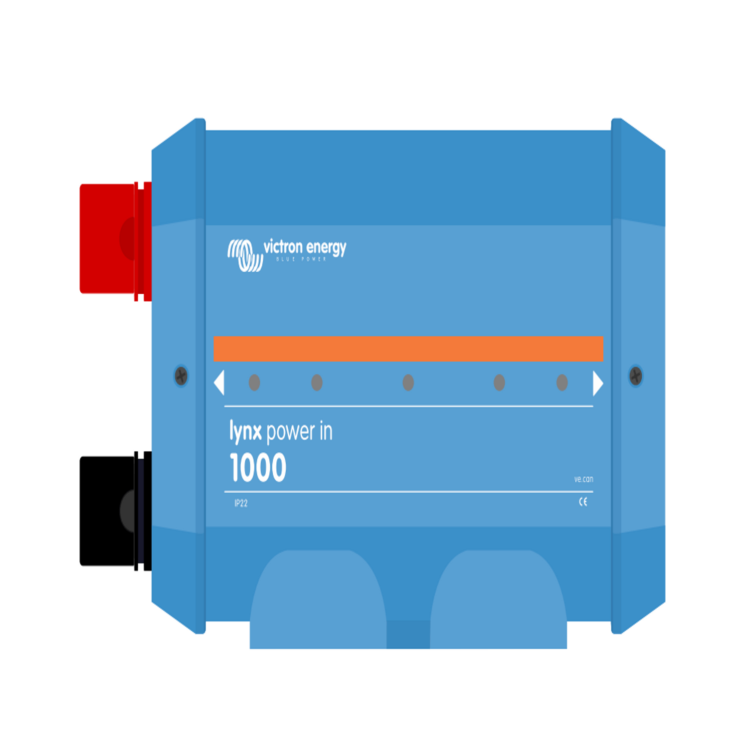 The Lynx Power In The Lynx Power In contains a positive and negative busbar with 4 connections for batteries, loads or chargers and a ground connection. It is part of the Lynx Distribution system.